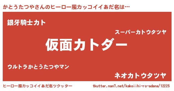 | 男性向けラノベタイトル風あだ名 | 『この素晴らしい世界にかとうたつやを!』 |