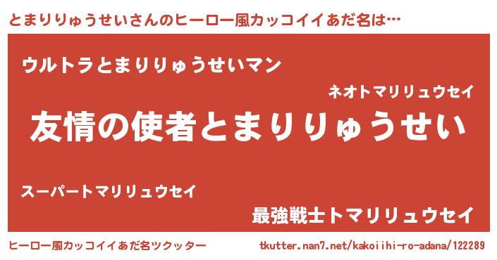 | 女子向けラノベタイトル風あだ名 | 『とまりりゅうせい恋絵巻』 |