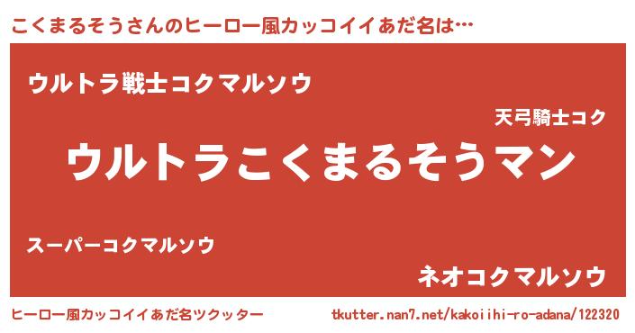 | 意味不明あだ名 | 『こくまるそうフォーエバー』 |
