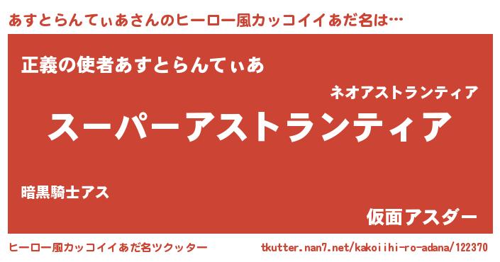 | 胡散臭い通販商品みたいなあだ名 | 『億万長者になれるブレスレット…その名も「あすとらんてぃあ」』 |