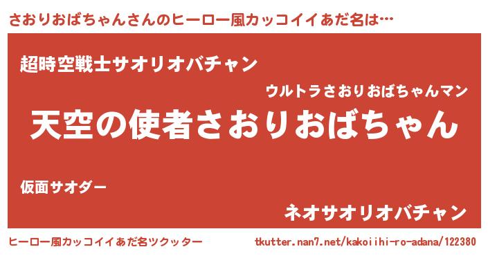 | 欧米人風あだ名 | 『アンジェラ・さおりおばちゃん』 |