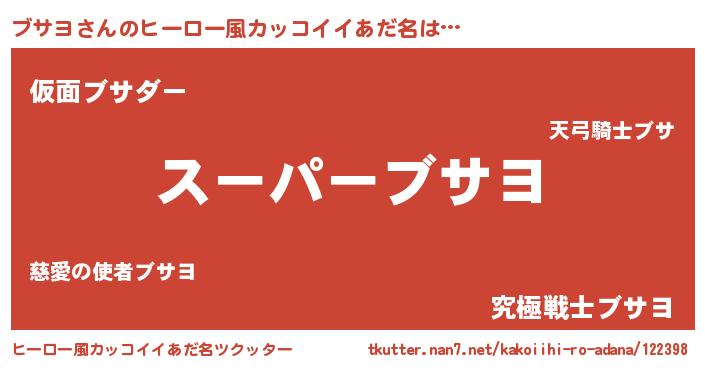 | 男性向けラノベタイトル風あだ名 | 『ブサヨの憂鬱』『魔弾の王とブサヨ』 |