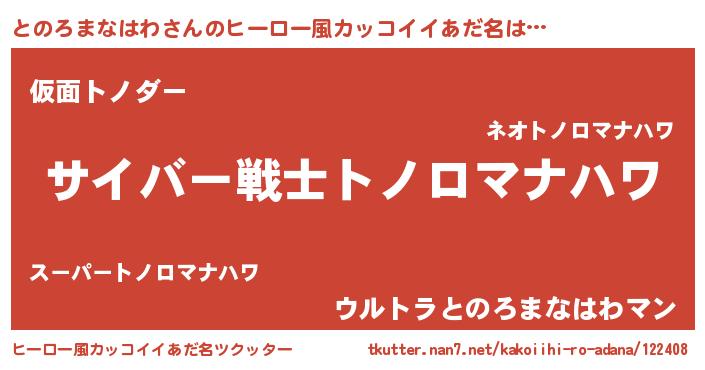 | 恥ずかしいあだ名 | 『トノロマナハワデラックス』『とのちん』 |