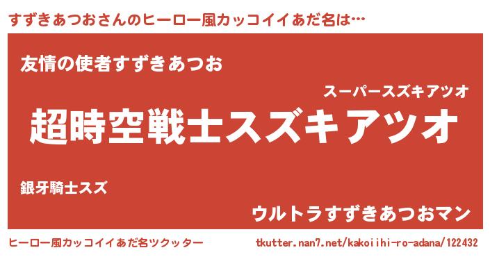 | 女子向けラノベタイトル風あだ名 | 『すずきあつおなんてお断りですっ。』 |