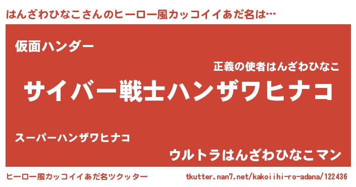 はんざわひなこさんのヒーロー風カッコイイあだ名をツクッター!