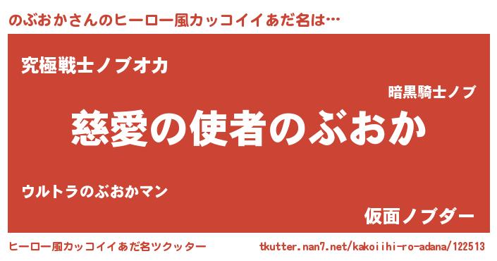 | 女子向けラノベタイトル風あだ名 | 『のぶおか恋絵巻』 |