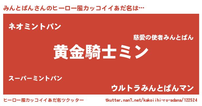 | 意味不明あだ名 | 『とにかく怪しいみんとぱん』 |