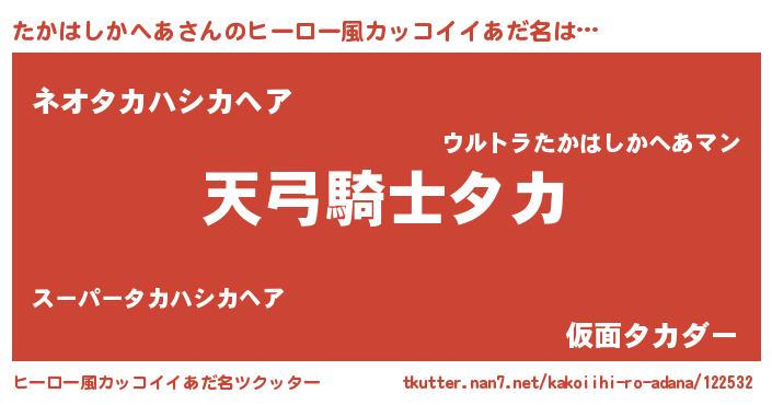 たかはしかへあさんのヒーロー風カッコイイあだ名をツクッター!