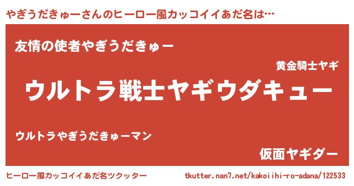 やぎうだきゅーさんのヒーロー風カッコイイあだ名をツクッター!