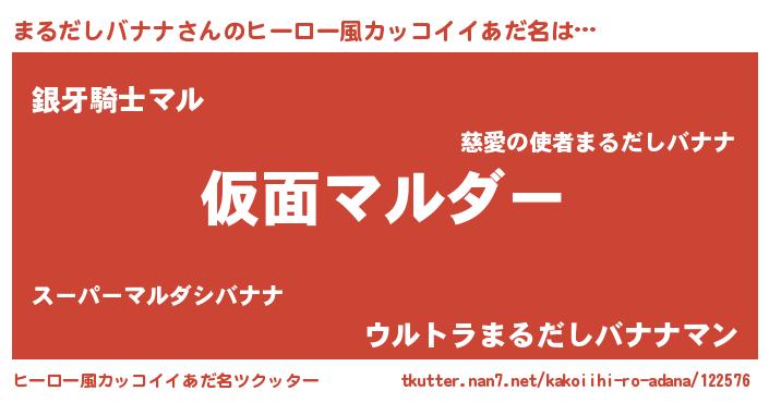| 男性向けラノベタイトル風あだ名 | 『この素晴らしい世界にまるだしバナナを!』 |