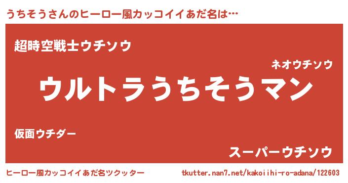 | 男性向けラノベタイトル風あだ名 | 『うちそうに滅ぼされるだけの簡単なお仕事です』 |