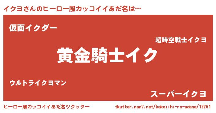 | 胡散臭い通販商品みたいなあだ名 | 『信頼と実績のサプリメント…その名も「イクヨ」』 |