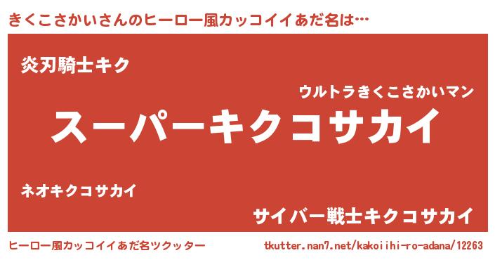 | 男性向けラノベタイトル風あだ名 | 『キクコサカイアートオンライン』 |