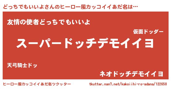 | 胡散臭い通販商品みたいなあだ名 | 『必ず成功するブレスレット…その名も「どっちでもいいよ」』 |