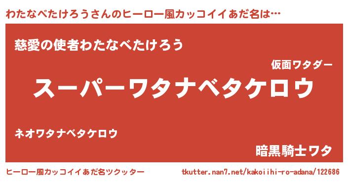 | 男性向けラノベタイトル風あだ名 | 『はたらくわたなべたけろうさま!』 |