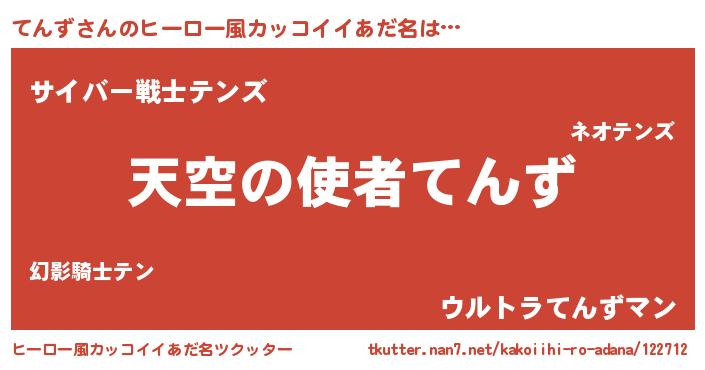 | 男性向けラノベタイトル風あだ名 | 『てんずに滅ぼされるだけの簡単なお仕事です』 |