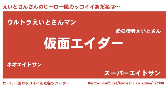 | 意味不明あだ名 | 『住所不定無職えいとさん(3歳)』 |