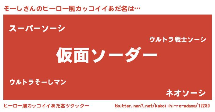 | 男性向けラノベタイトル風あだ名 | 『この素晴らしい世界にそーしを!』 |