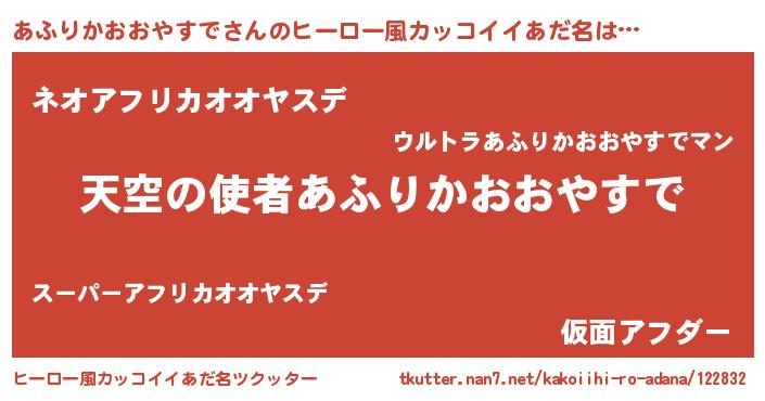 あふりかおおやすでさんのヒーロー風カッコイイあだ名をツクッター!