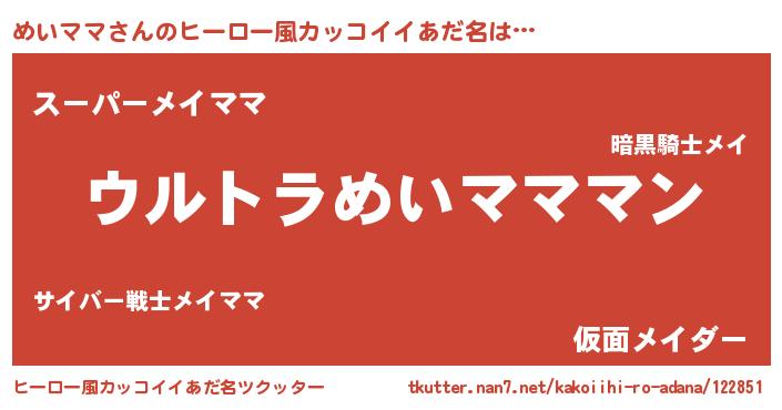 | 男性向けラノベタイトル風あだ名 | 『やはりめいママの青春ラブコメはまちがっている 』 |