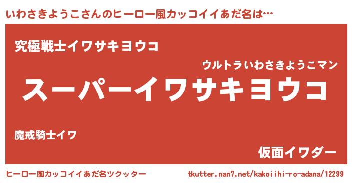 | 男性向けラノベタイトル風あだ名 | 『イワサキヨウコアートオンライン』 |