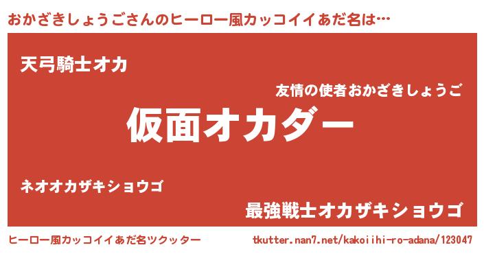 | 男性向けラノベタイトル風あだ名 | 『この素晴らしい世界におかざきしょうごを!』 |