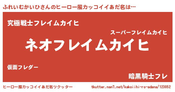 | ヘコむあだ名 | 『ふれいむかいひ(震え声)』『ふれっちょ』 |