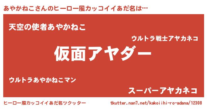 | 意味不明あだ名 | 『住所不定無職あやかねこ(5歳)』 |