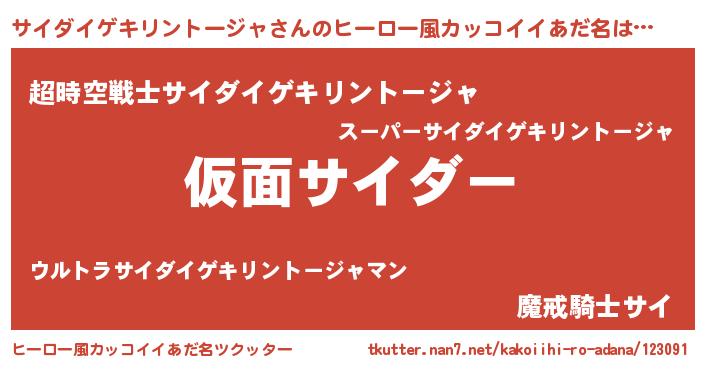 | 男性向けラノベタイトル風あだ名 | 『この素晴らしい世界にサイダイゲキリントージャを!』 |