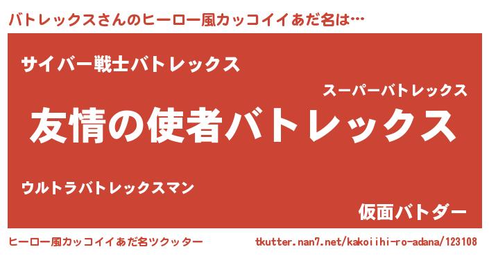 | 女子向けラノベタイトル風あだ名 | 『バトレックス恋絵巻』 |