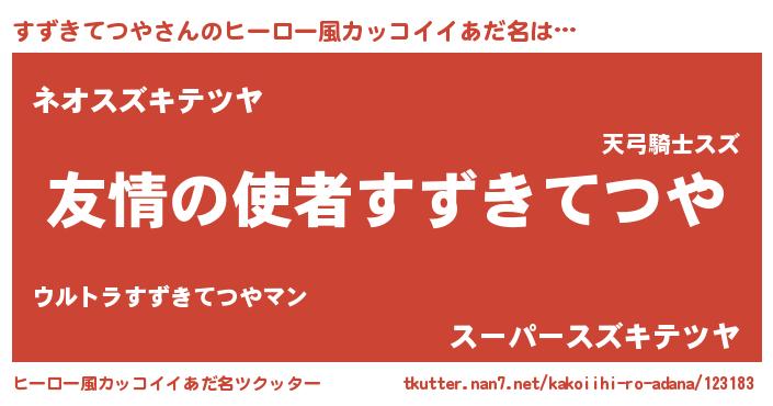 | ヘコむあだ名 | 『すずきてつや(笑)』『すずにゅー』 |