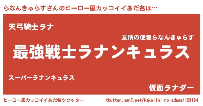 | 男性向けラノベタイトル風あだ名 | 『Re:らなんきゅらすから始める異世界生活』 |