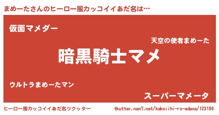 | 意味不明あだ名 | 『とにかく怪しいまめーた』 |