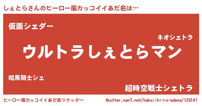 | 意味不明あだ名 | 『しぇとらフォーエバー』『自称しぇとら』 |