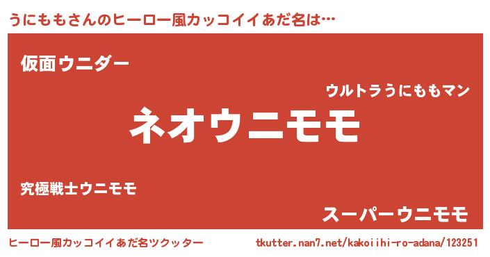 | 男性向けラノベタイトル風あだ名 | 『緋弾のウニモモ』『うにももの憂鬱』 |