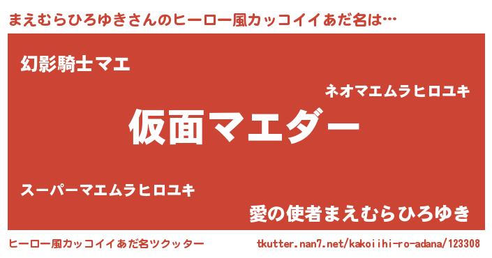 | ヘコむあだ名 | 『まえっ子』『まえむらひろゆき(苦笑)』 |