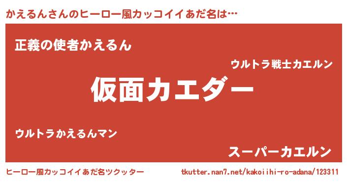 | 男性向けラノベタイトル風あだ名 | 『はたらくかえるんさま!』 |