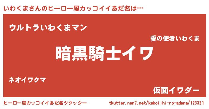 | 意味不明あだ名 | 『とにかく怪しいいわくま』 |