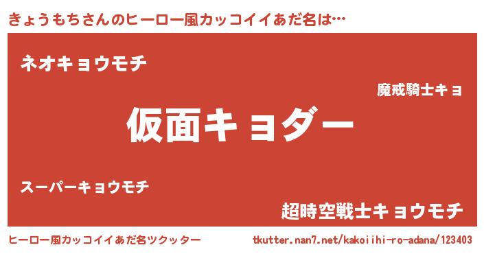 | 意味不明あだ名 | 『住所不定無職きょうもち(11歳)』 |