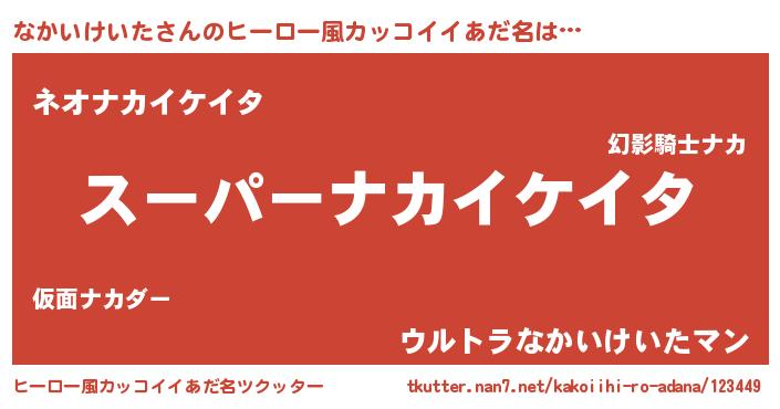 | 男性向けラノベタイトル風あだ名 | 『ナカイケイタアートオンライン』 |
