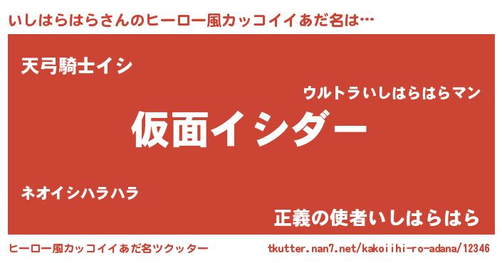 | 男性向けラノベタイトル風あだ名 | 『この素晴らしい世界にいしはらはらを!』 |