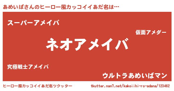 | 意味不明あだ名 | 『永久保存あめいば』『ペロリンあめいば』 |