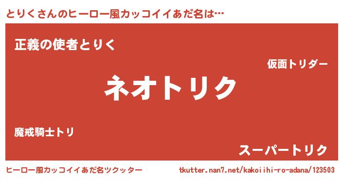 | ヘコむあだ名 | 『とりく(爆)』『とりにゅー』 |