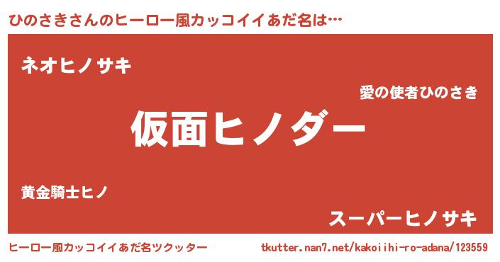| 男性向けラノベタイトル風あだ名 | 『この素晴らしい世界にひのさきを!』 |