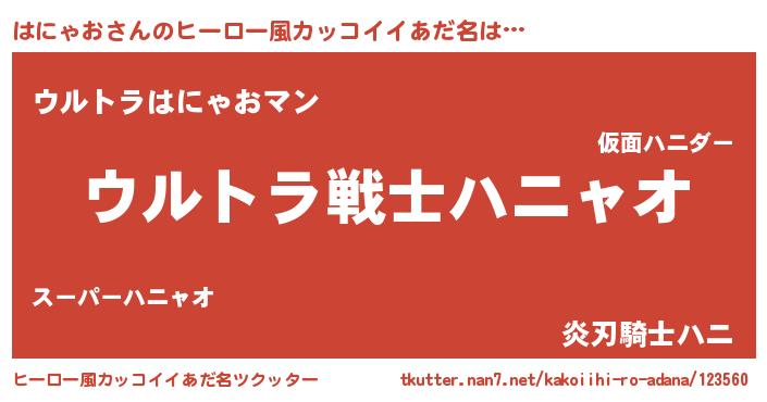 | 男性向けラノベタイトル風あだ名 | 『転生したらはにゃおだった件』 |
