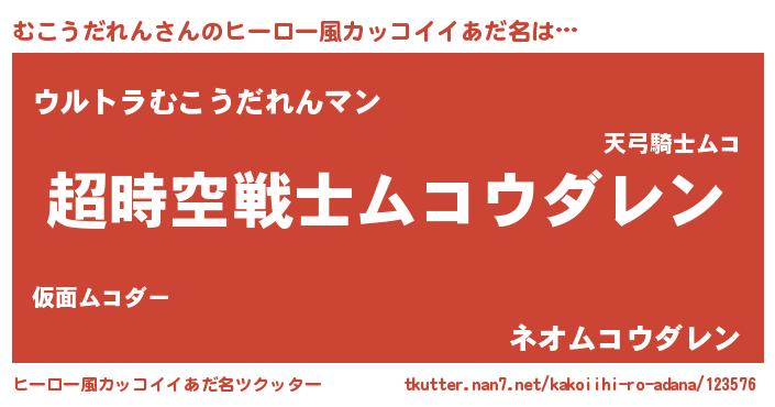 | 意味不明あだ名 | 『自称むこうだれん』 |