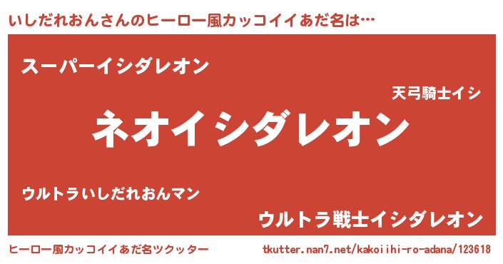 | 男性向けラノベタイトル風あだ名 | 『転生したらいしだれおんだった件』 |