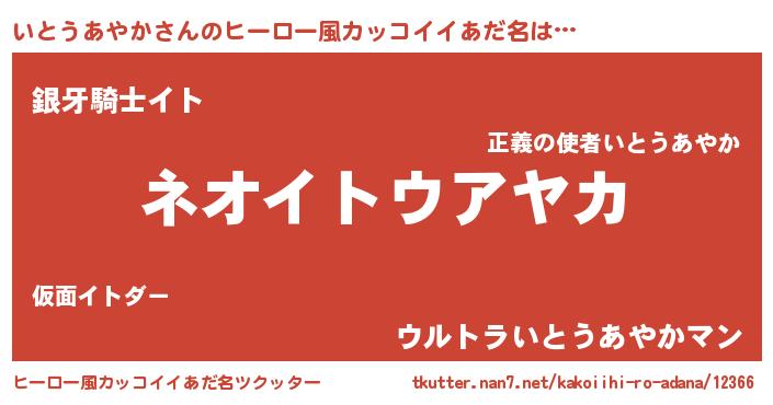 | 男性向けラノベタイトル風あだ名 | 『いとうあやかという概念が存在しない退屈な世界 』 |