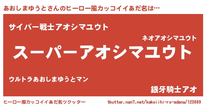 | 男性向けラノベタイトル風あだ名 | 『アオシマユウトアートオンライン』 |