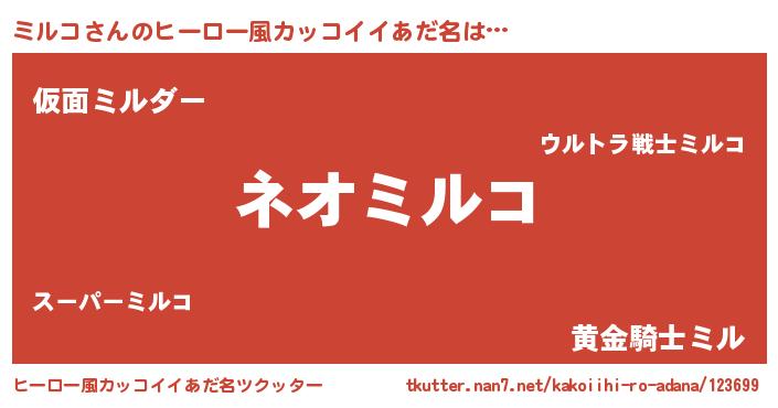 | 意味不明あだ名 | 『永久保存ミルコ』『めかぶ科ミルコ属』 |